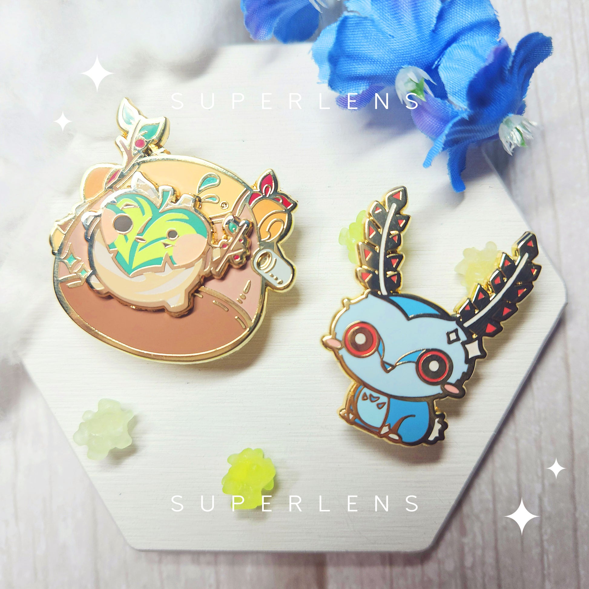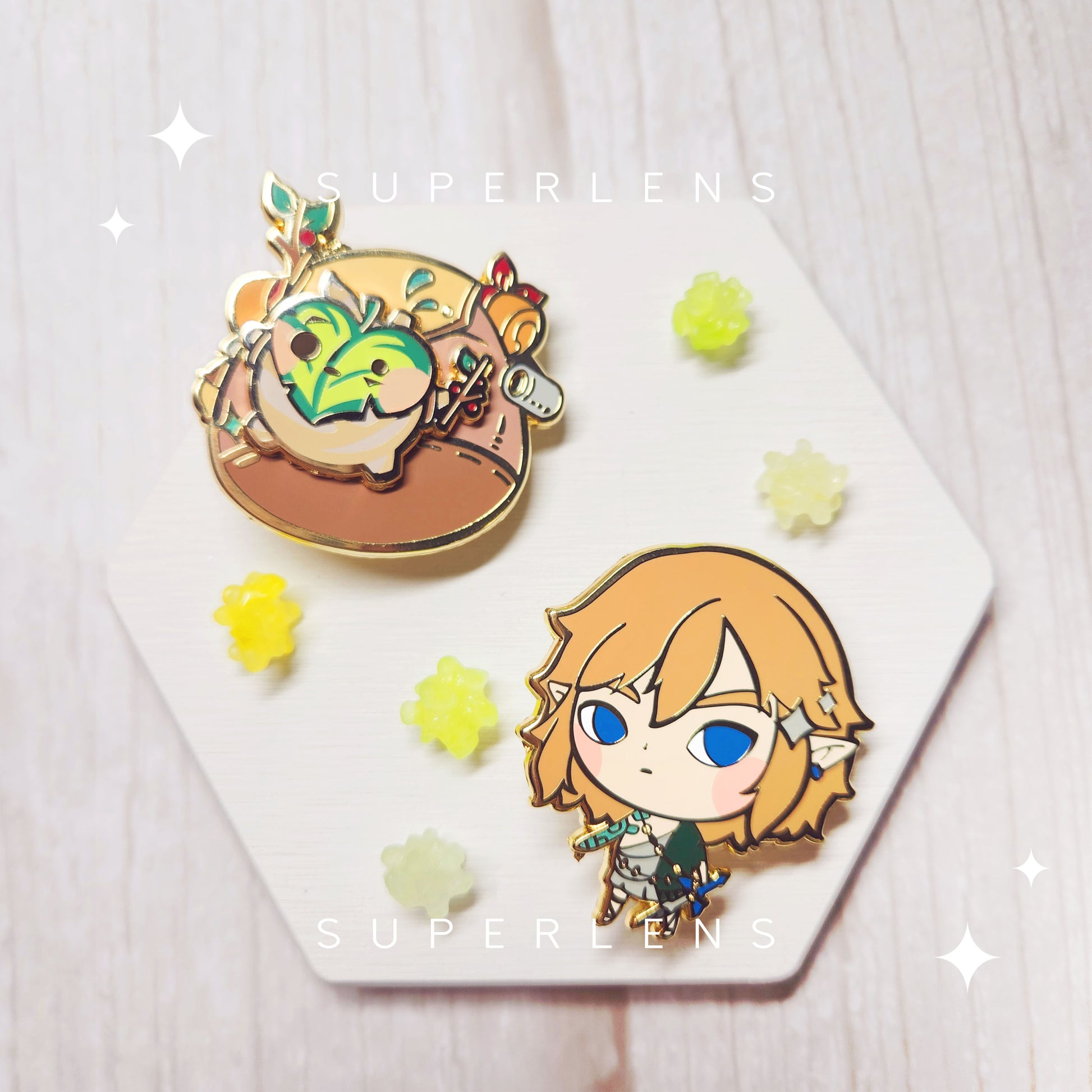 Each pin is back stamped [SUPERLENS] for authenticity